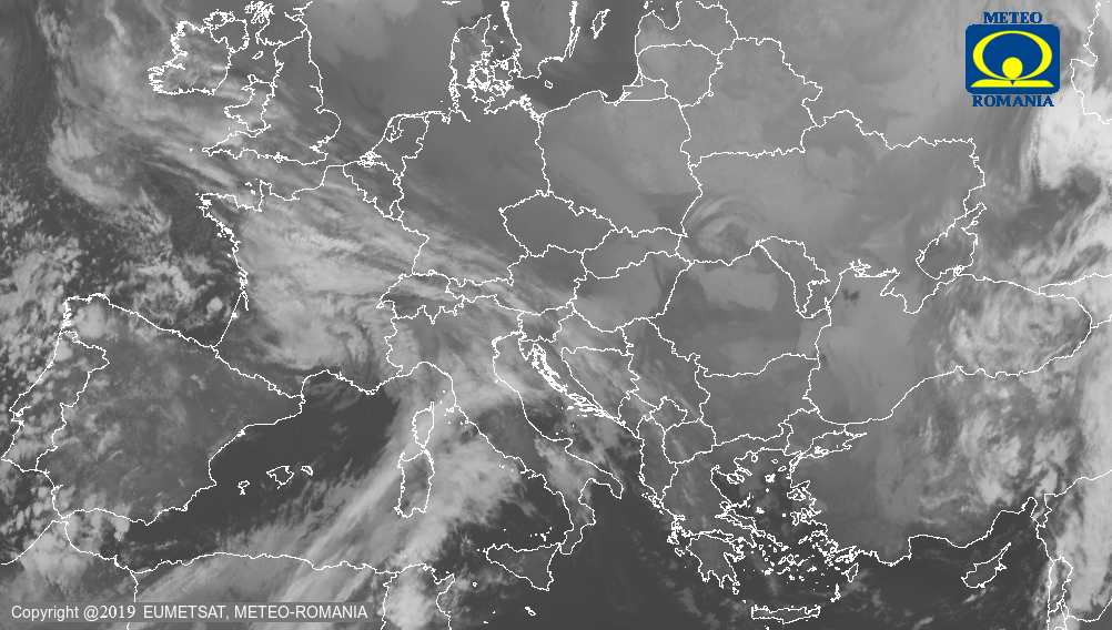 Imagine satelit : Canal Infrarosu Termic 10.8 micrometri - Temperatura de stralucire la data: An 2026 Luna 02 Zi 02 Ora 13 UTC